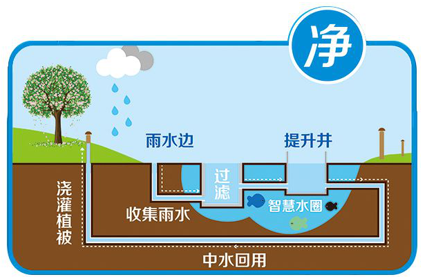 通過土壤的吸附、植被根系的吸收,綠地系統、水體等的過濾,都能對水質產生凈化作用。雨水凈化后,可作為生態補充水,有條件也可用于綠化澆灌等。